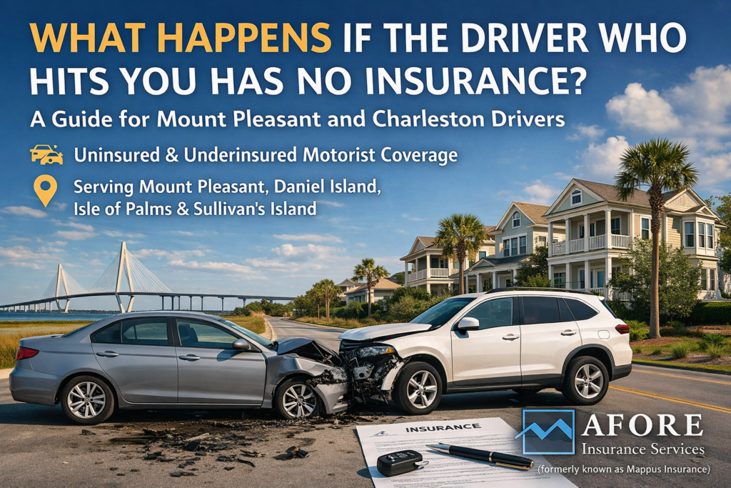 At Afore Insurance (formerly known as Mappus Insurance), we regularly review these coverages with clients in Mount Pleasant, Daniel Island, Isle of Palms, and Sullivan’s Island, because they can be one of the most important protections included in your auto insurance policy.
